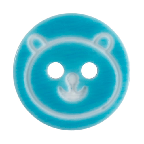 Teddy Bear Face Buttons, Blue, 13mm