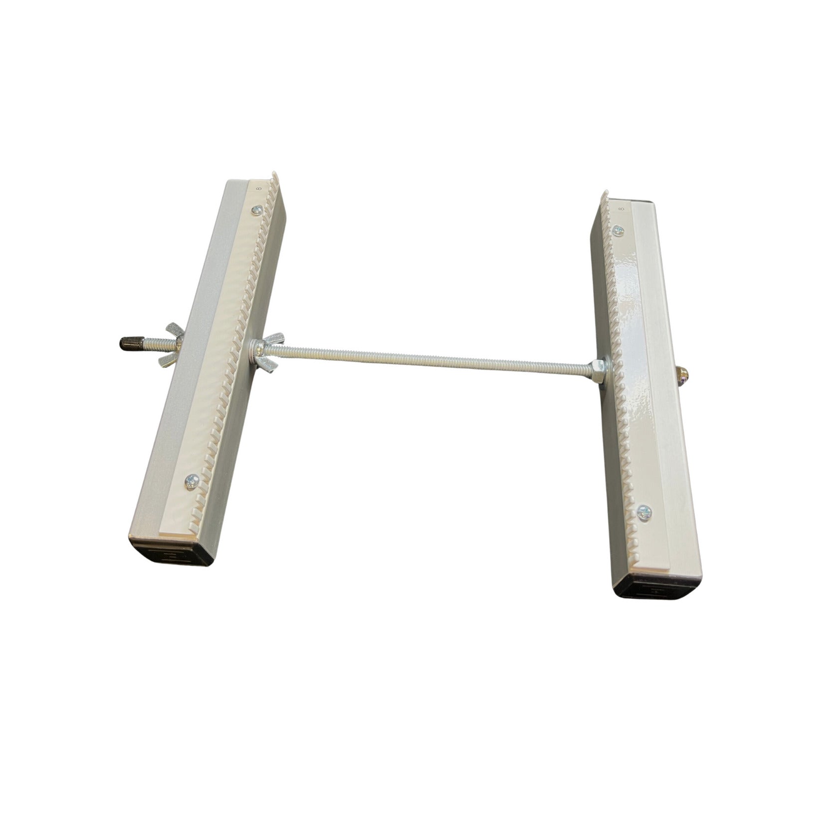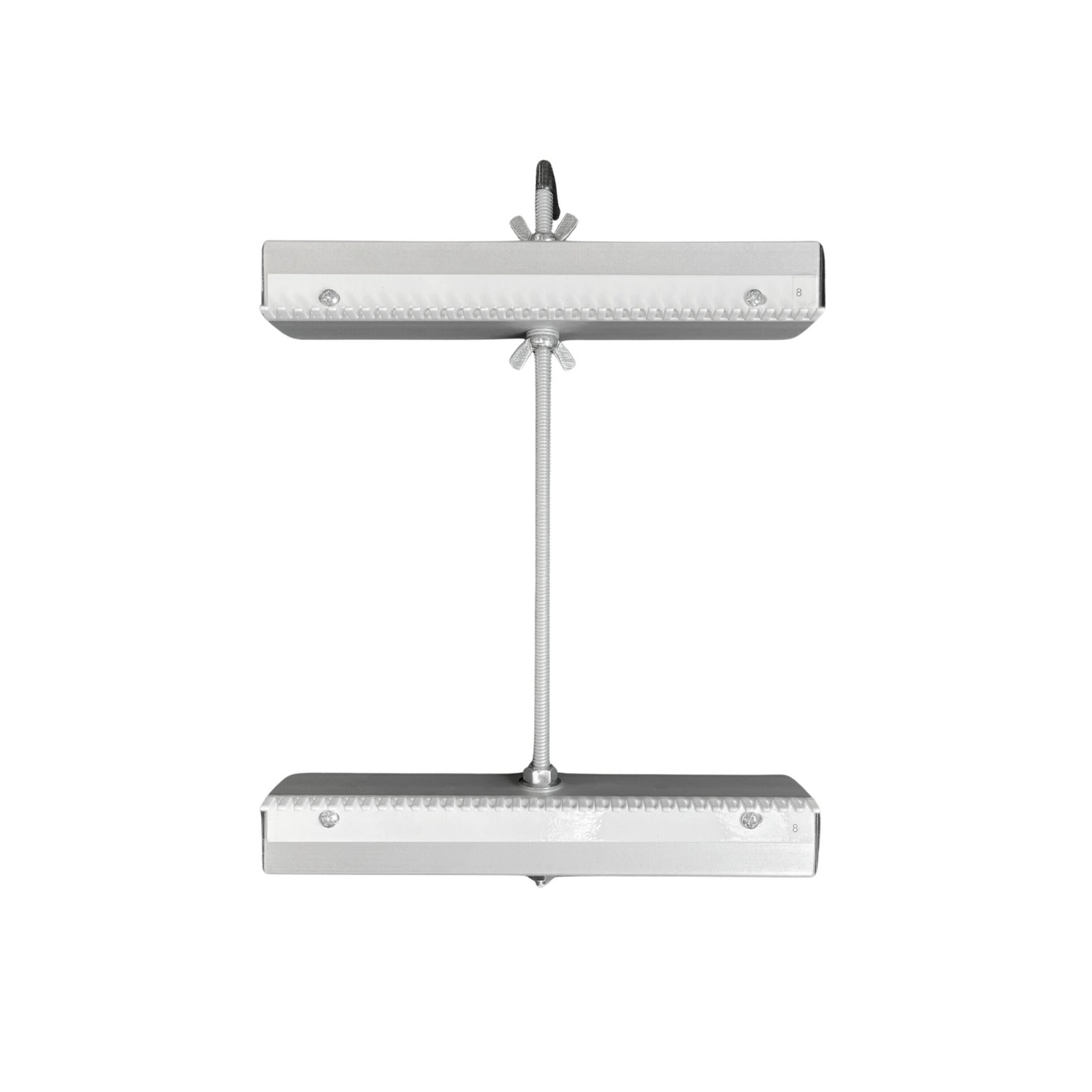 This 8" loom comes with one top and one bottom beam with 2 x 8 dpi metal combs, one threaded rod for an 8" weaving length, two wing-nuts, two double washers, one hex nut, one regular washer, one cap nut, one plastic cap and written instructions. This loom also comes with two custom made wrenches for assembling the loom and making tension adjustment simple.
